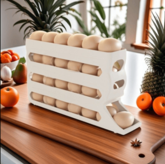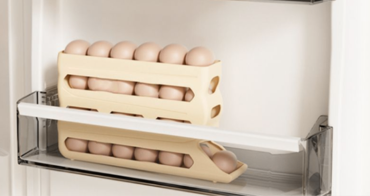 🥚スライド式卵収納盒 4段式ロールデザイン 冷蔵庫側面対応 キッチン収納ラック