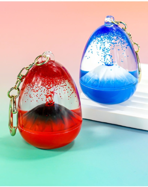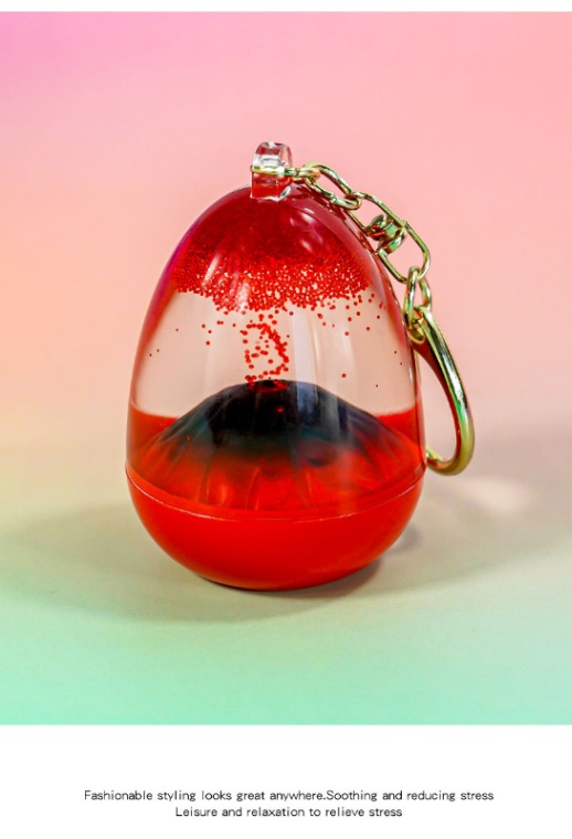 幻想的なサンドフローエフェクト:内部には彩砂が入った液体が封入されています。キーリングを揺らすと、砂がゆっくりと流れる幻想的なサンドフローエフェクトが現れ、心を癒します。まるで本物の火山の噴火を見るような感じで、ストレスを軽減する効果があります。