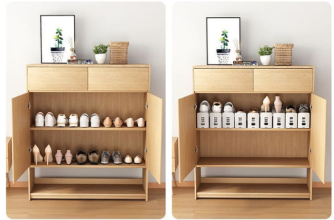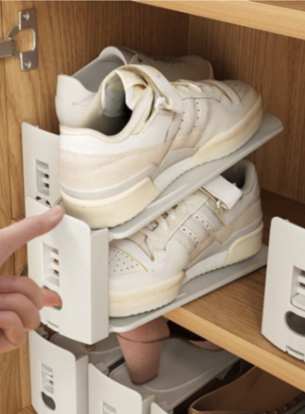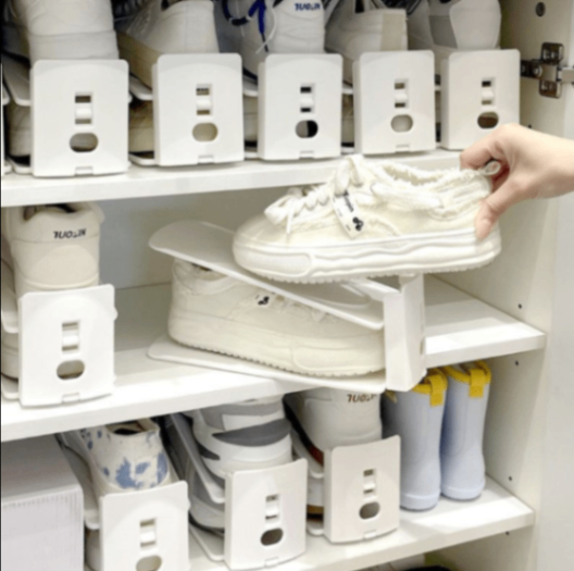 靴の収納が困る?この「シューズスロットオーガナイザー 調整可能 プラスチック製 二段式ドーム型 靴ラック」で玄関・シューケースの空間を効率活用!
