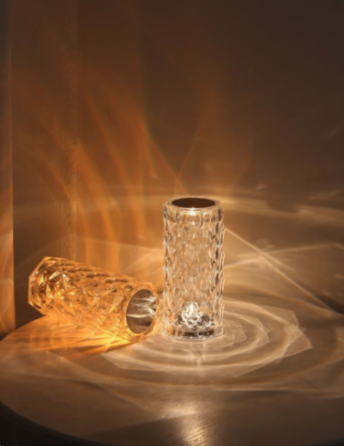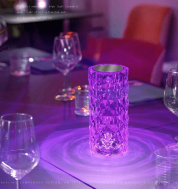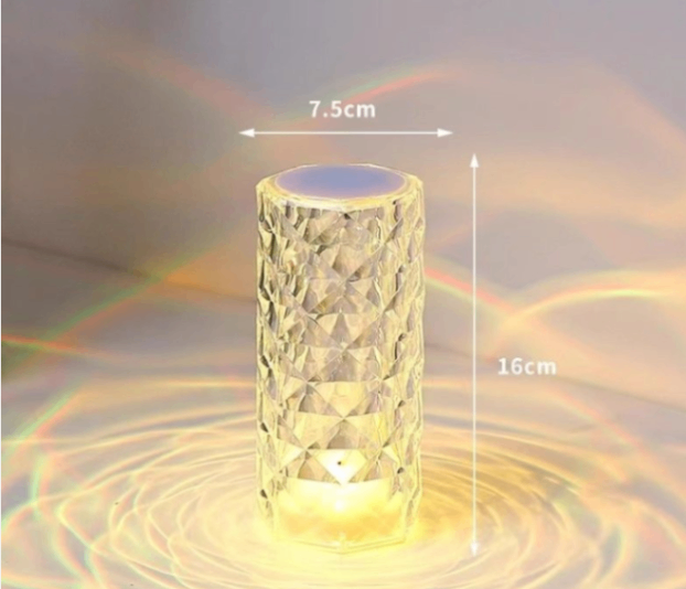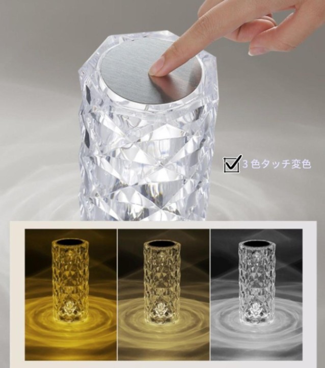 クリスタルカットバラの雰囲気ライト、充電式タッチナイトライト