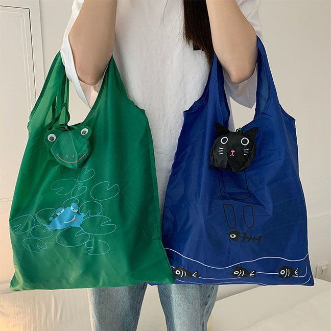 動物の形 デザインの折りたたみ エコバッグです。普段のお買い物はもちろん、旅行やアウトドアにも便利です。コンパクトに折りたためるので、バッグに入れても邪魔になりません。使わない時は、小さく 折りたたんで 収納できます。広げると 大容量で、たくさんの荷物を入れることができます。軽い素材を使用しているので、持ち運びが楽です。