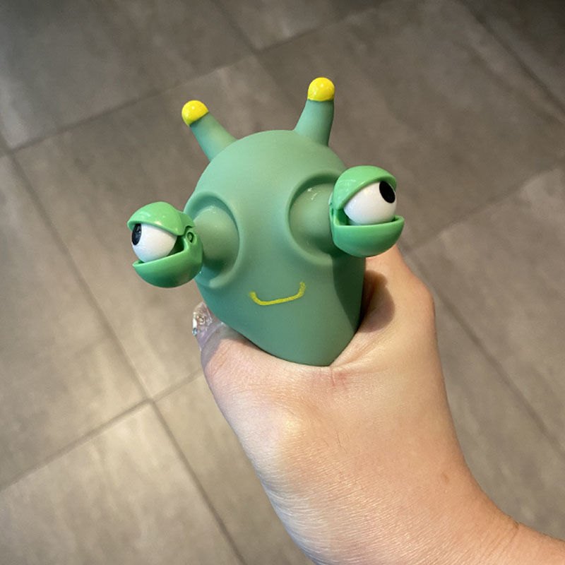 目を飛び出す青虫のおもちゃんをプレゼントします。