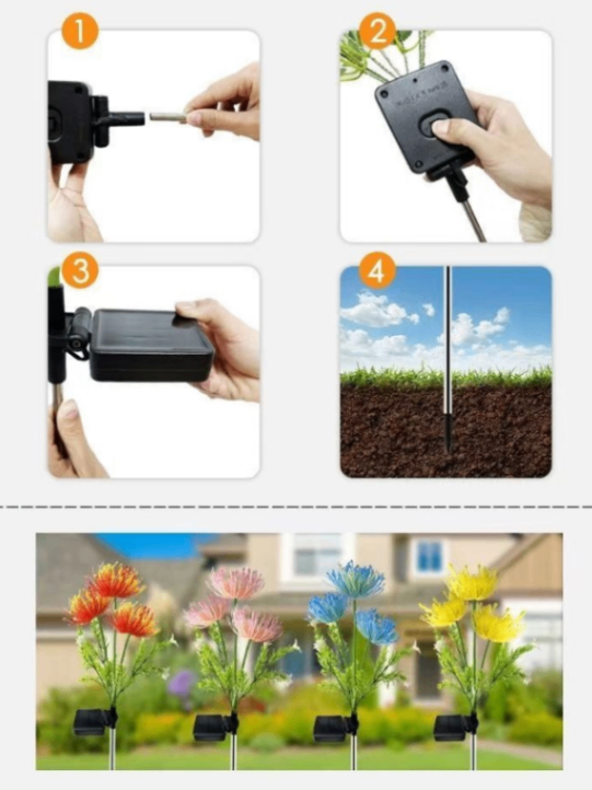 昼は太陽光で充電、夜は自動点灯!お庭やベランダを彩る、華やかなソーラーフラワーライトです。