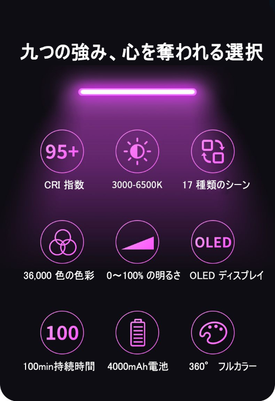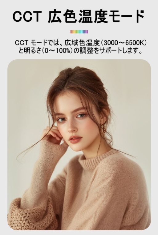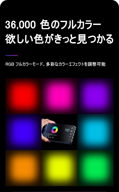 多彩モード搭載:RGB フルカラーモードを搭載。被写体や雰囲気に合わせて、色温度を調整できます。