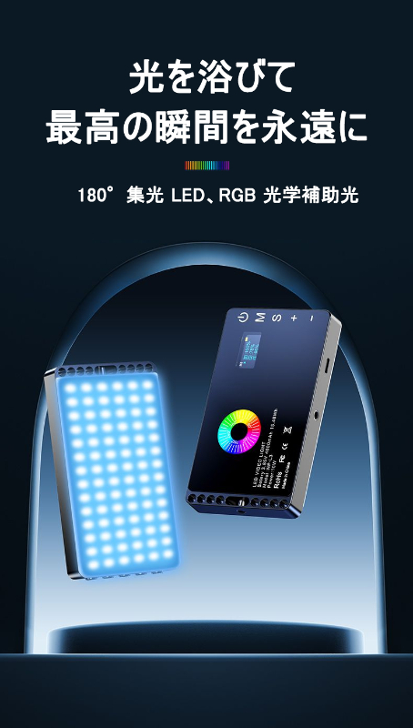 ライブ自撮り補助光、ポータブル撮影、フルカラー撮影、一眼レフカメラ・スマホ手持ちロケ撮影ライト