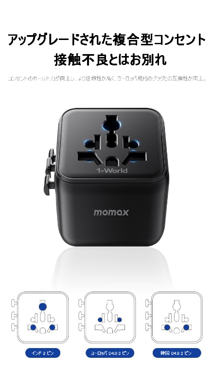 MOMAXヨーロッパ、アメリカ、イギリス、日本、韓国、タイ地域の旅行用変換プラグ、グローバルコンセント